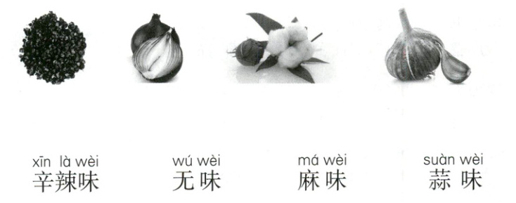 1. 闻气味:黑胡椒——辛辣味;棉花——无味;花椒——麻味;大蒜——蒜味