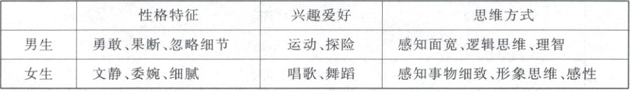 )① 进入青春期,男生女生在多方面表现出各自的特点 ② 性别差异只会让我们形成性别刻板印象 ③ 差异客观存在,塑造形象不能完全受其影响 ④ 要学会尊重差异,接纳、理解、共同进步
