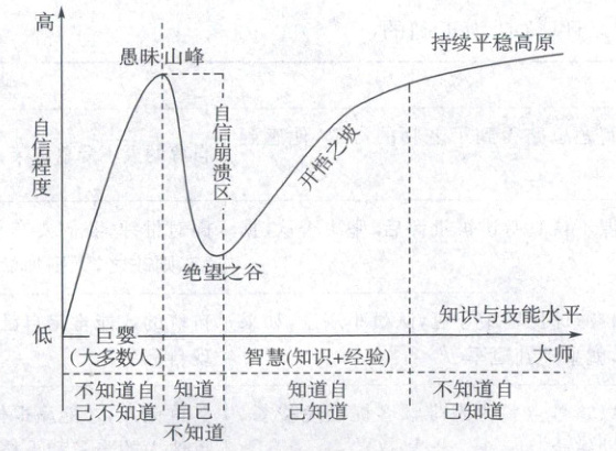 2. 小刚在班级篮球赛中投中关键三分后,骄傲地对队友说:“我这就是天赋! 你们练半年也赶不上。”但当他参加校队选拔时,却因基本功差被教练批评。结合达克效应(下图),最能解释这种现象的是(