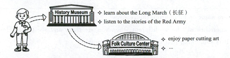 In the morning, we visited the History Museum. There, we learned about the Long March and listened to the stories of the Red Army. They were really moving and made me proud. In the afternoon, we went to the Folk Culture Center. We enjoyed beautiful paper cutting art and even tried to make some simple paper cuttings ourselves. It was so interesting! We also watched a traditional dance show there. I had a great time and learned a lot about our history and culture. It was a meaningful day.