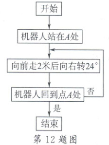 12. 有一程序,如果机器人在平地上按如图所示的步骤行走,那么机器人回到$A$点处行走的路程是