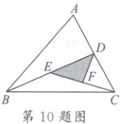 10. 如图,$BD是\triangle ABC$的中线,$CE是\triangle BCD$的中线,$DF是\triangle CDE$的中线,若$\triangle ABC的面积为4$,则$\triangle DEF$的面积为
