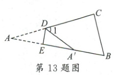 13. 如图,将纸片$\triangle ABC沿DE$折叠,使点$A落在BE边上的点A'$处,若$\angle A = 18^{\circ}$,则$\angle 1= $