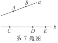 7. 如图,已知点 A,B 在直线 a 上,点 C,D,E 在直线 b 上.以点 A,B,C,D,E 中的任意三点作为三角形的顶点,可以组成的三角形有