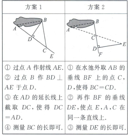 5. 为了测量水池两边A,B间的距离,两名同学提供了如下间接测量方案.请分别证明方案1,2.