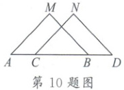 10. 如图,已知MB = ND,∠MBA = ∠NDC,下列添加的条件中,不能用于判定△ABM ≌ △CDN的是(