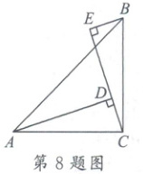 8. 如图,∠ACB = 90°,AC = BC,AD⊥CE,BE⊥CE,垂足分别是点D,E,AD = 3,BE = 1,则DE的长是(