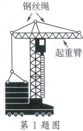 1. 如图是工地施工所用的塔吊,塔吊上端有两根钢丝绳。两根钢丝绳与起重臂围成的三角形三边长可能是(