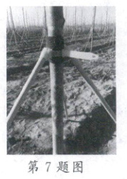 7. 如图,为了使树木竖直向上生长,通常用两根木棍交叉在一起以固定树木生长方向,这样做的原理是