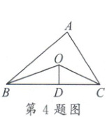 4. 如图,已知△ABC的周长是22,OB,OC分别平分∠ABC和∠ACB,OD⊥BC于D,且OD= 3,△ABC的面积是