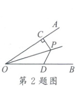 2. 如图,OP平分∠AOB,PC⊥OA于点C,点D在OB上,若PC= 2,OD= 5,则△POD的面积为(