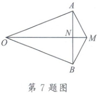 7. 如图所示,∠AOB= 40°,OM平分∠AOB,MA⊥OA于A,MB⊥OB于B,则∠MAB的度数为