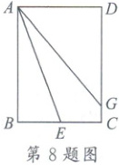 8. 如图,在长方形ABCD中,AB= 8,$G C = \frac { 9 } { 8 }$,AE平分∠BAG交BC于点E,E是BC的中点,则AG的长为