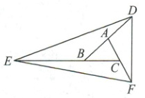 例3 如图,将三角形ABC的边BA延长1倍到D,CB延长2倍到E,AC延长1倍到F。如果三角形ABC的面积等于1,那么三角形DEF的面积是(