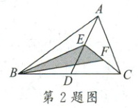 2. 如图,在△ABC中,已知点D,E,F分别为边BC,AD,CE的中点,且$S_{△ABC}= 24cm^2$,则阴影部分的面积为(