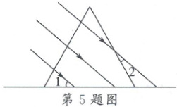5. 如图,一束平行光线照射在等边三角形上,若 $\angle 1 = 40^{\circ}$,则 $\angle 2$ 的度数为