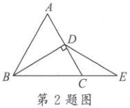 2. 如图,若 $\triangle ABC$ 是等边三角形,$AB = 6$,$BD$ 是 $AC$ 边上的高,延长 $BC$ 到 $E$,使 $CE = CD$,则 $BE$ 的长为