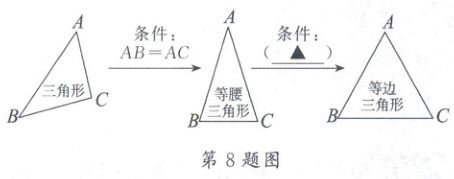 8. 小明同学将几种三角形的关系整理如图,请帮他在括号内填上一个适当的条件是