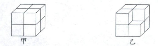3. 甲、乙两图形都用棱长1厘米的小正方体搭成(如下图所示),它们的表面积比较,甲(