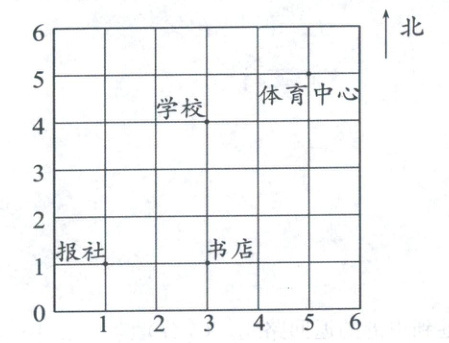 )。(5)数对$(5,3)$表示的是图书馆的位置,请用彩笔标出来。