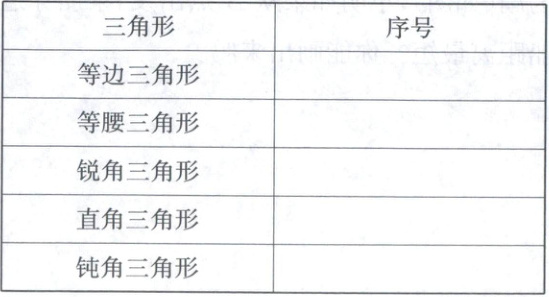 四、将下列三角形的序号按照类别填在表格里。(每空2分,共10分)