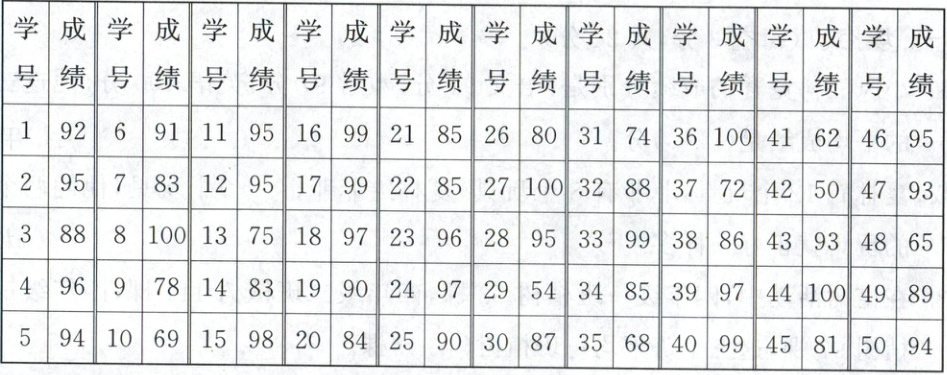 5. 下面是四(1)班数学考试成绩记录单,据此完成相关问题。(单位:分)(15分)
