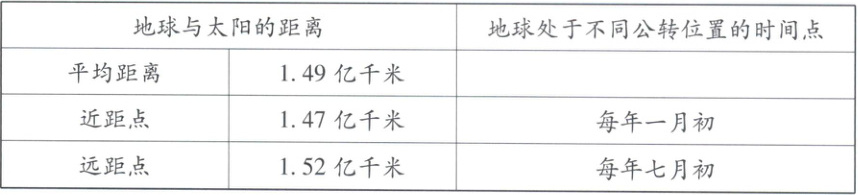 4. 观察地球公转轨道距离与时间的记录表,我们可以知道(