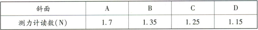 3. 答:斜面D的坡度最小。因为坡度越小越省力。由表格可知,斜面D最省力,所以坡度最小的是斜面D。