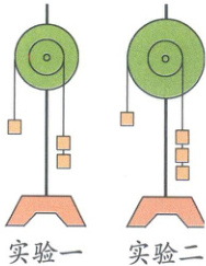 2. 如图所示,实验一和实验二的轮轴处于平衡状态。无论是实验一还是实验二,我们都可以得出一个结论:在轮上用力,比在轴上要