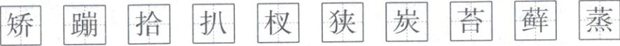 矫 蹦 拾 扒 杈(原题“权”推测为“杈”的误写,按给出字作答) 狭 炭 苔 藓 蒸