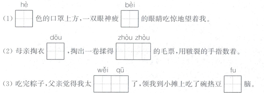 (1)褐 惫 (2)兜 皱皱(3)委屈 腐