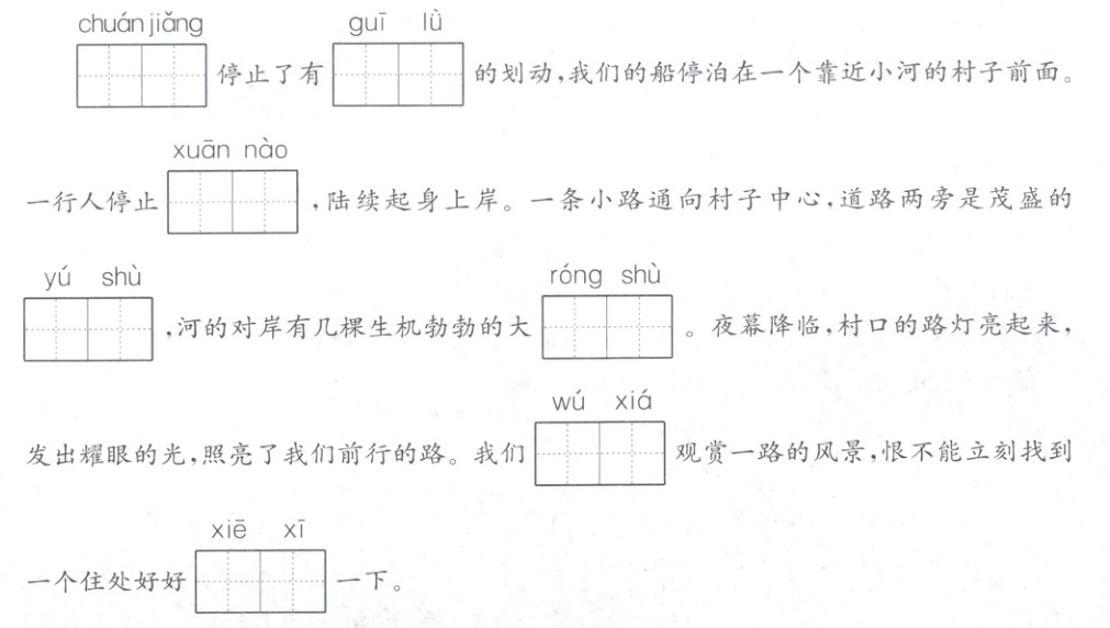 船桨 规律 喧闹 榆树 榕树 无暇 歇息