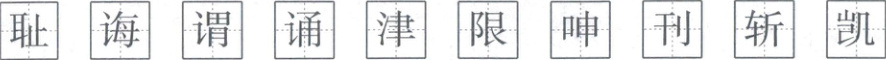耻(左窄右宽)诲(左窄右宽)谓(左窄右宽)诵(左窄右宽)津(左右近等)限(左窄右宽)呻(左窄右宽)刊(左窄右宽)斩(左右近等)凯(左窄右宽)