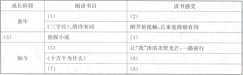 2. 微文美写:读一读《我的“长生果”》中富有表现力的词语,并用上其中 3~4 个,介绍一下自己的读书经历。(8★)