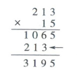 1. (生活情境)向阳小学新购进 15 套桌椅,每套 213 元,购买这些桌椅花了多少元?如图算式中箭头所指的这一步表示的是(