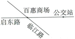 (2)在图中,过百惠商场作与临江路垂直的直线,标为北辰路。