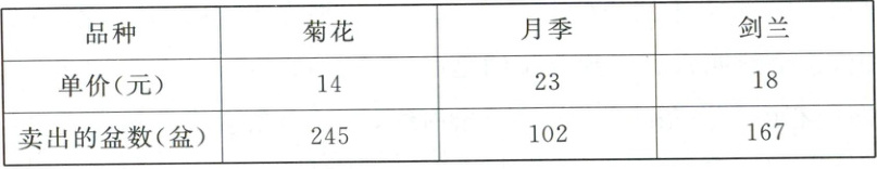 3. 思雨花屋 3 种花的价格和 9 月份卖出的盆数如下表:(8 分)