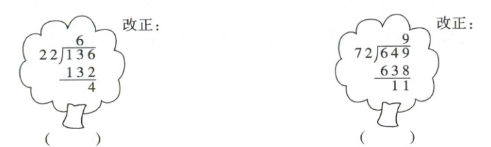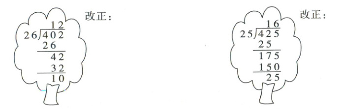 ×;改正:$\begin{array}{r} 15\\ 26\enclose{longdiv} {402}\\ 26\\ \hline 142\\ 130\\ \hline 12\end{array}$