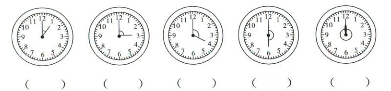 1. 写一写,下面钟表的时针和分针各形成了什么角?(10 分)