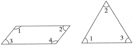 经测量:$∠1 = 60^{\circ}$,$∠2 = 120^{\circ}$,$∠3 = 120^{\circ}$,$∠4 = 60^{\circ}$。