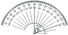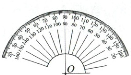 1. (6 分)(1)请在右图残破的量角器上标画出一个以 $O$ 为顶点 $70^{\circ}$的角。
