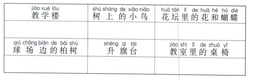 三、下列属于校园里自然景物的有哪些?在属于自然景物的下面打“√”,不属于的下面打“×”。