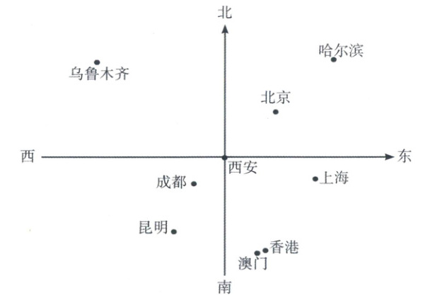 (1)东北 西南 (2)西南 东北 (3)东南 西北 (4)西南 东北