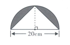 已知半圆直径$d = 20cm$,则半径$r=\frac{d}{2}=10cm$,三角形的底为$20cm$,高为$10cm$。