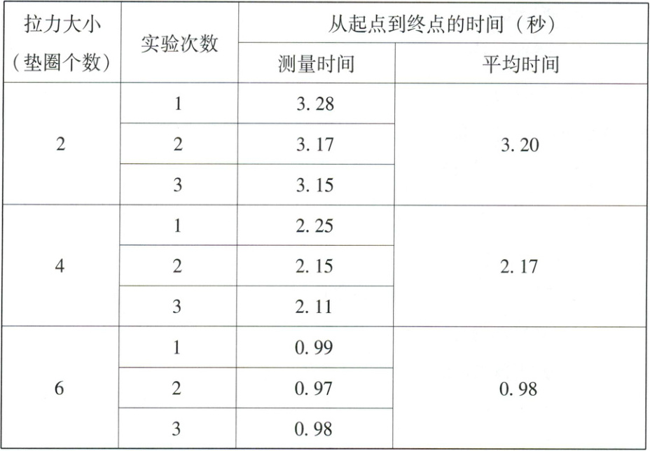 4. 要想知道多少个垫圈刚好能使小车运动起来,要多个地增加垫圈。 (