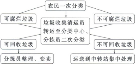 例 3 (2023·厦门期末) A 市农村实行生活垃圾“二次四分法”处理模式,这一模式改善了当地农村人居环境,提高了村民的文明素养,在多地得到认可与推广。对于“二次四分法”的垃圾处理模式,下列理解正确的是 (