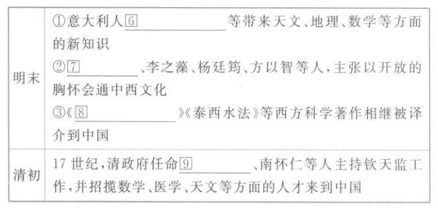 |明末|①意大利人⓺利玛窦等带来天文、地理、数学等方面的新知识