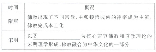 |宋明|以⓶儒家学说为核心兼容佛教和道教理论的宋明理学形成,佛教融合为中华文化的一部分|
