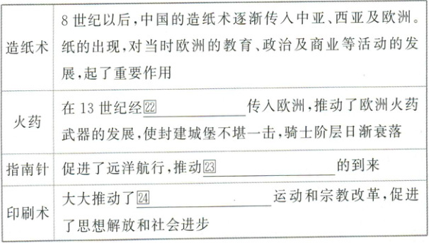 ㉒阿拉伯人 ㉓大航海时代 ㉔文艺复兴 ㉕孔子