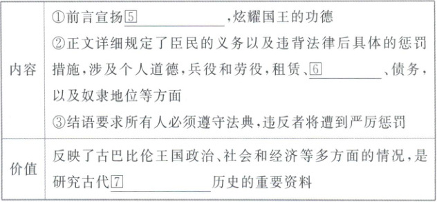 (4)法典:古巴比伦王国的《汉谟拉比法典》。